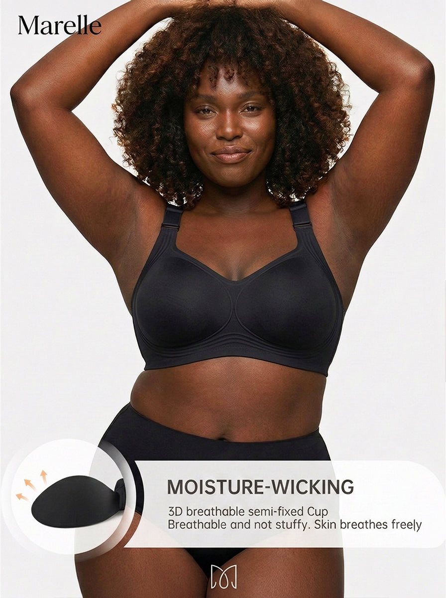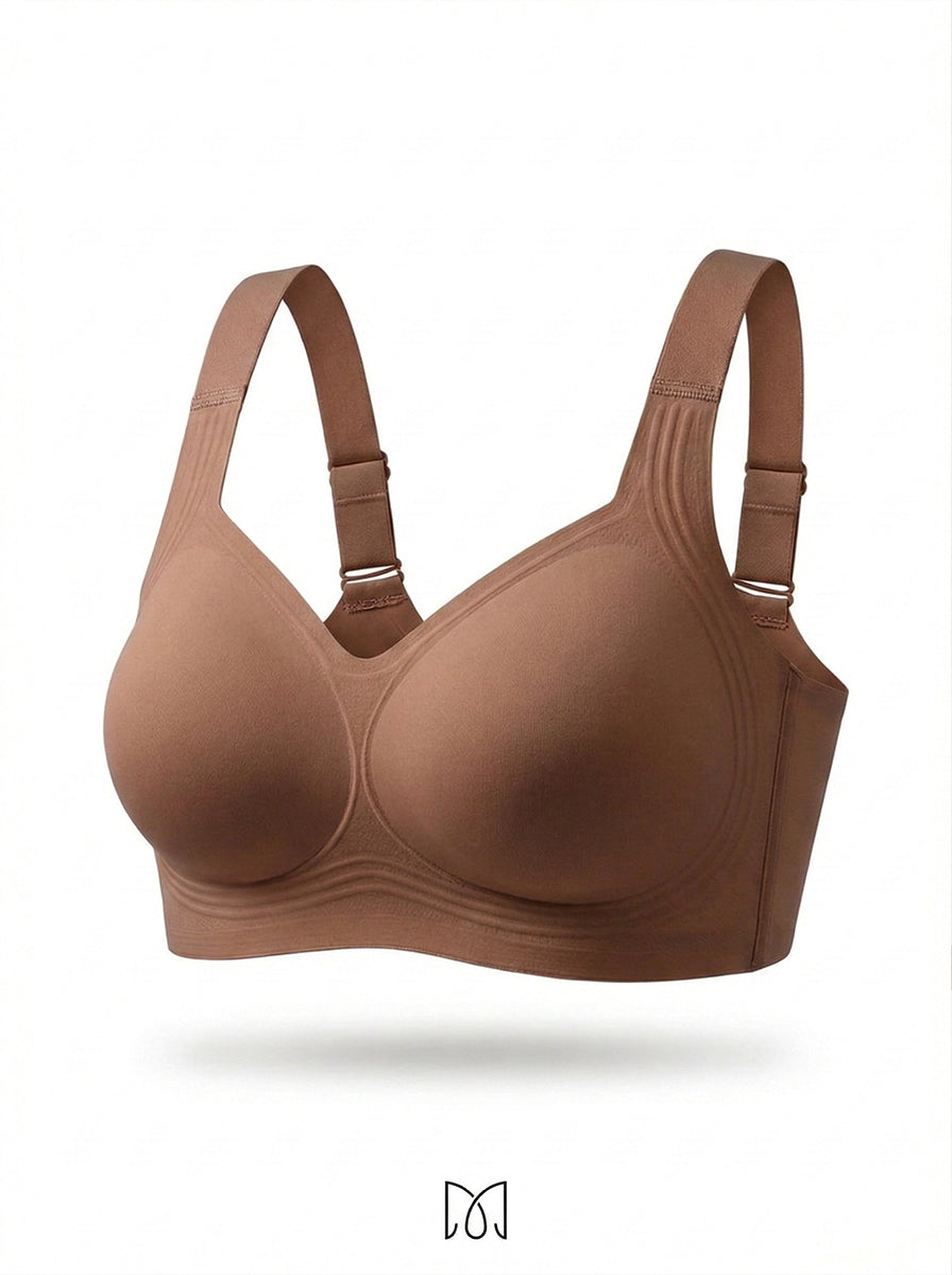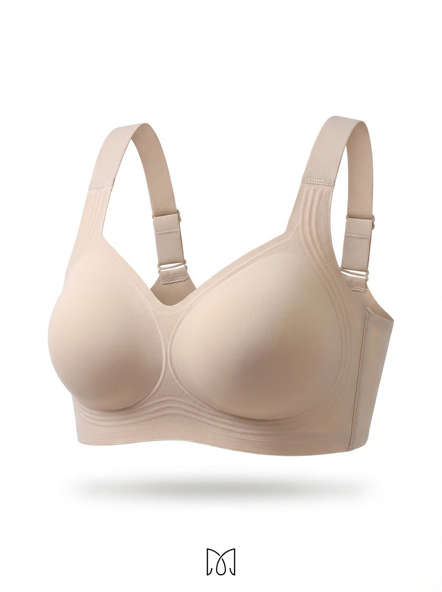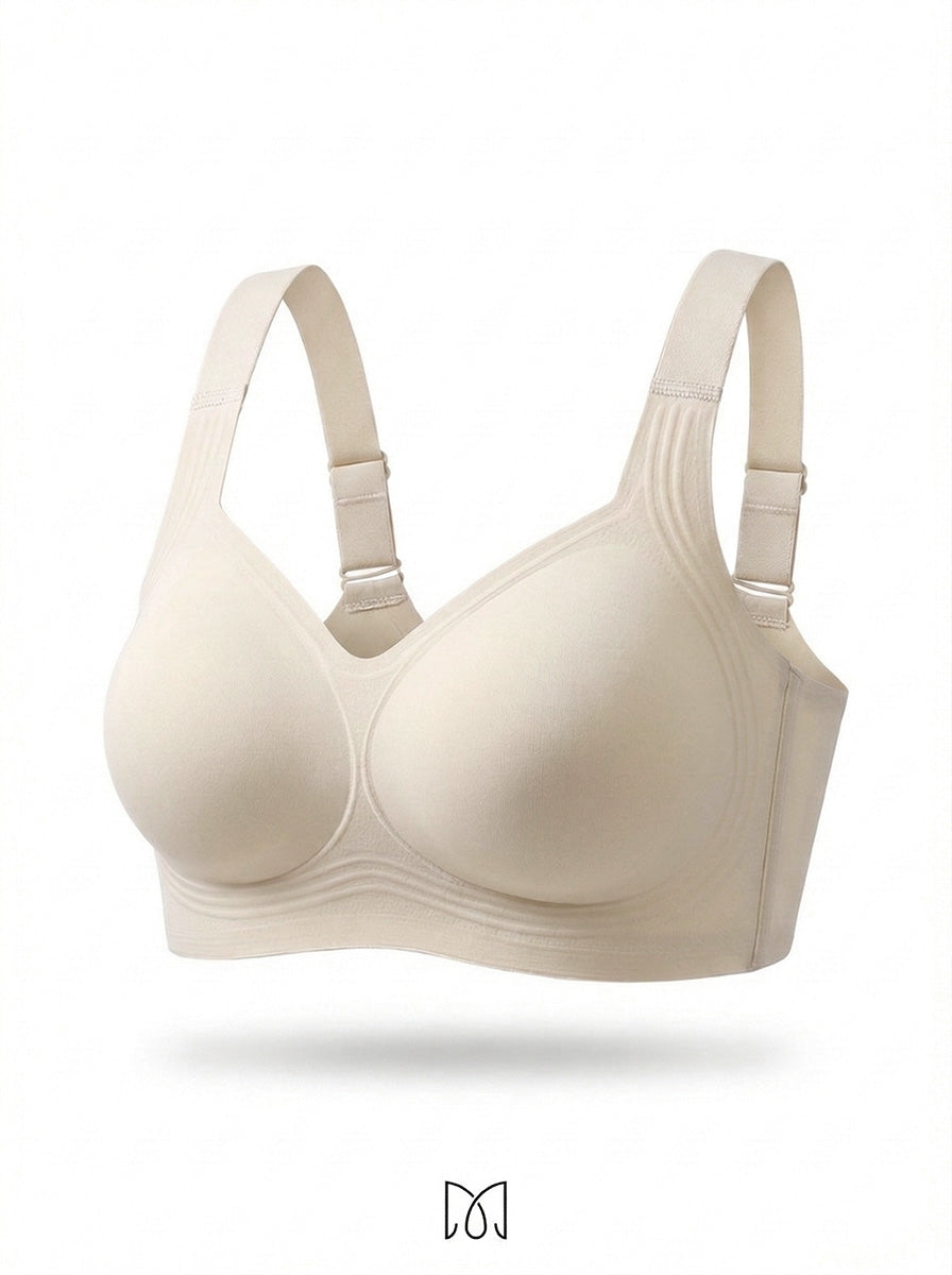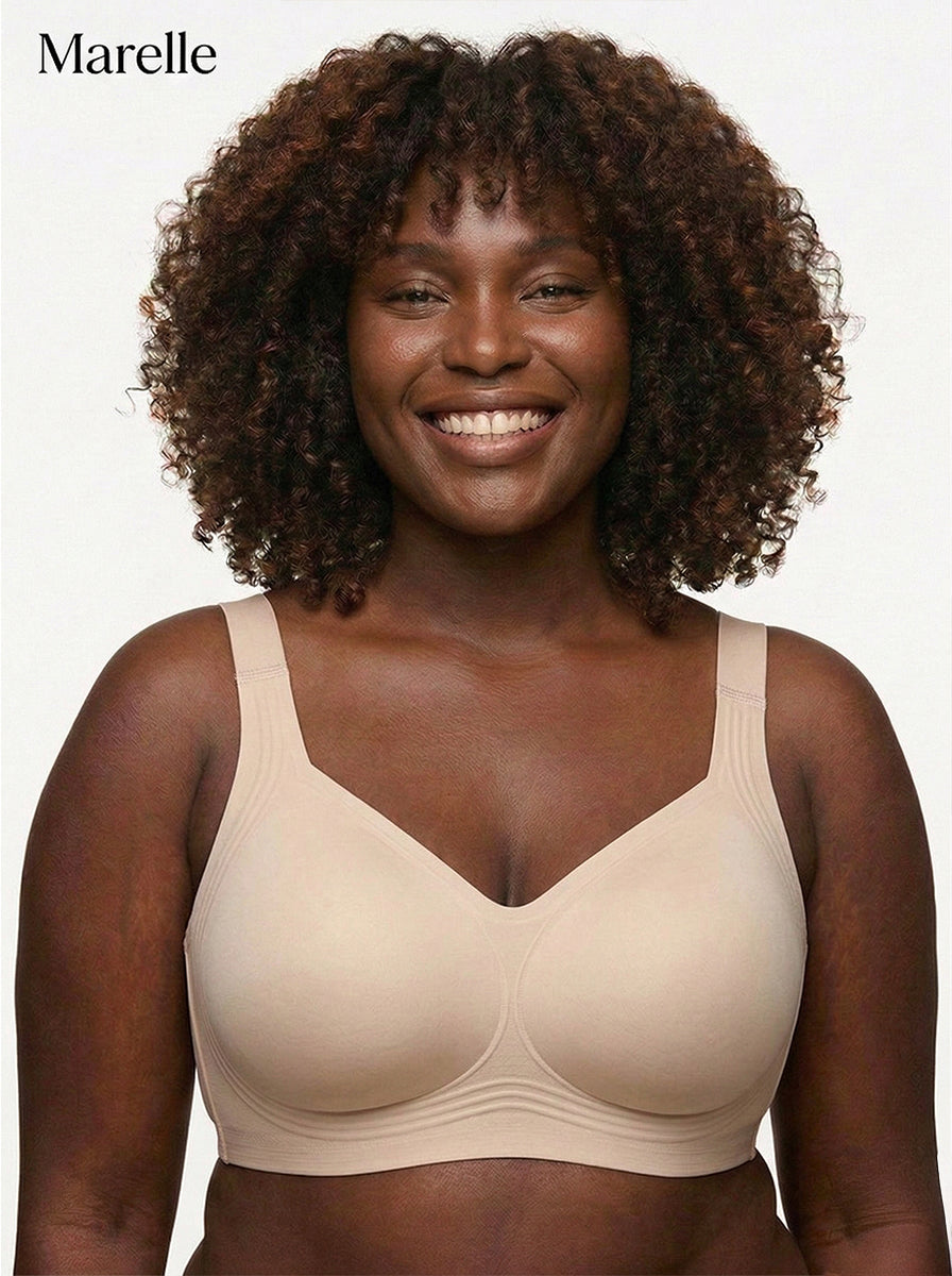 Never. Most wireless bras compress everything flat and forward. Marelle's 3D molded cups cradle each breast individually, keeping them naturally separated and lifted. Your shape stays exactly where it belongs — all day long.